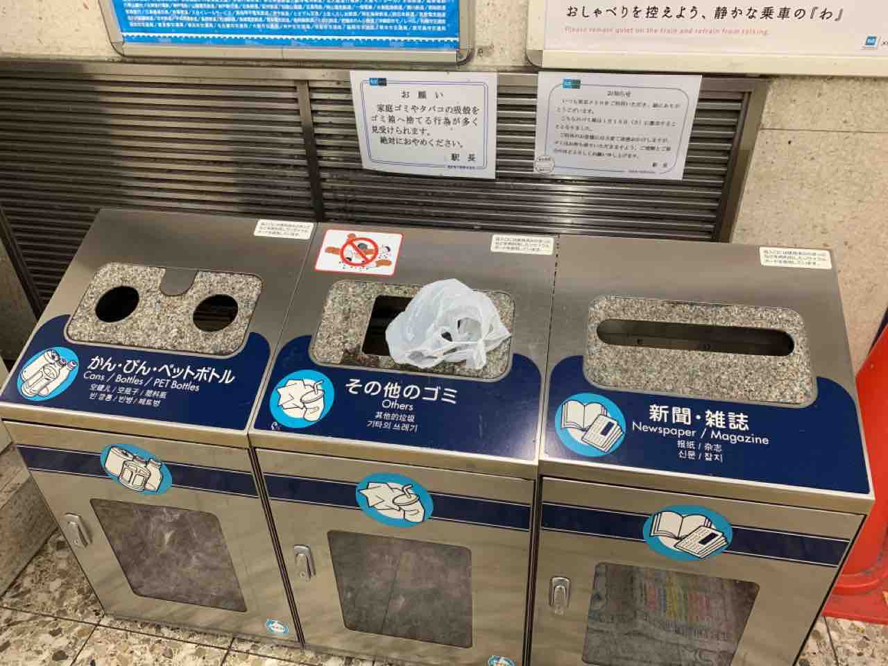 駅のゴミ箱たち…