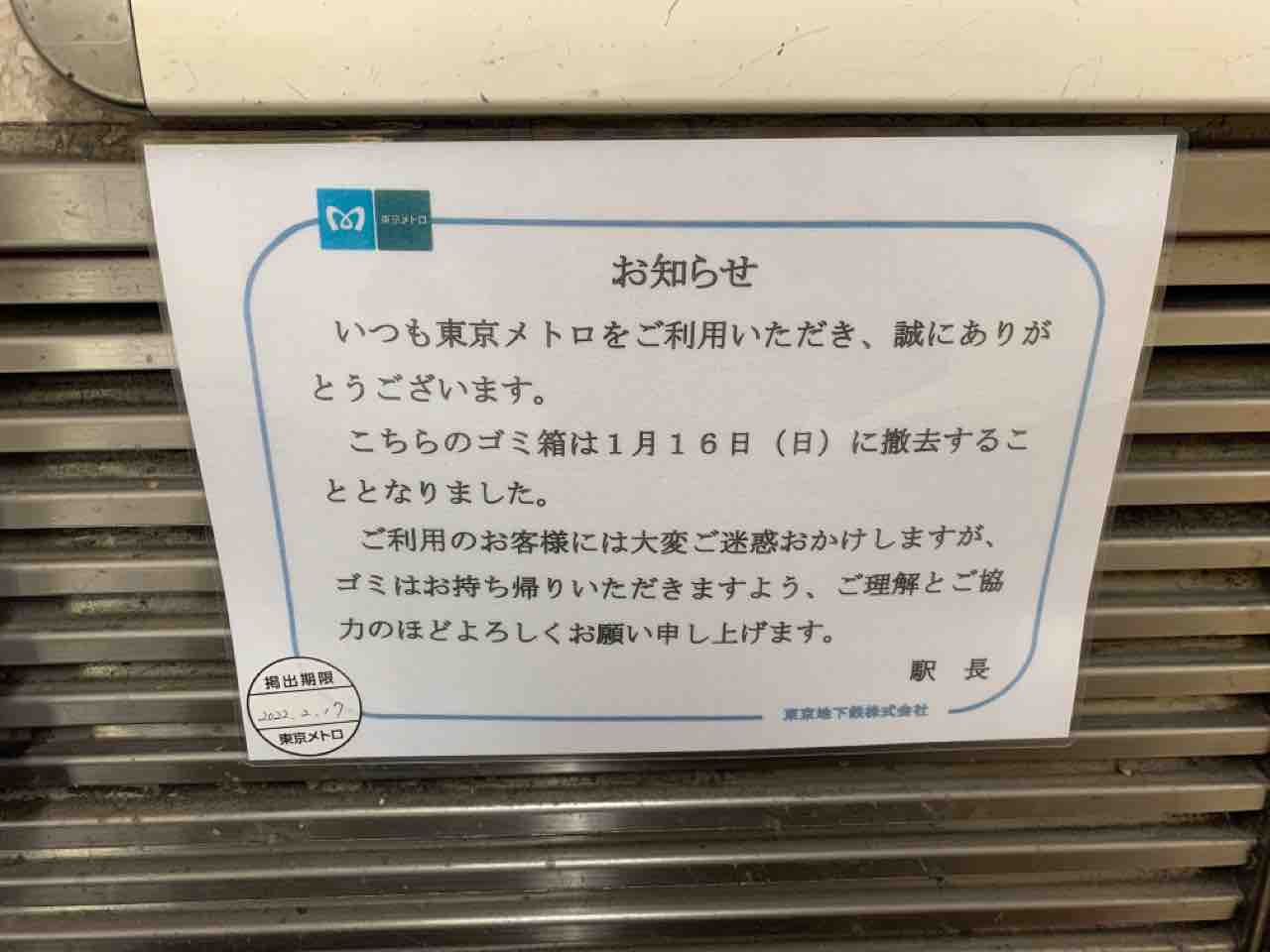 「東京メトロ、駅構内のゴミ箱撤去」