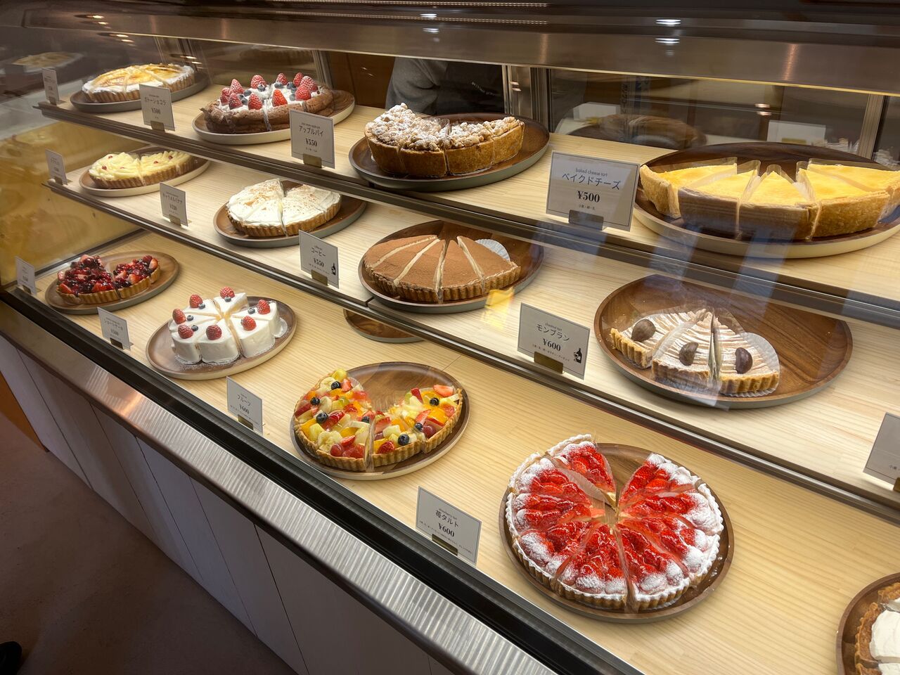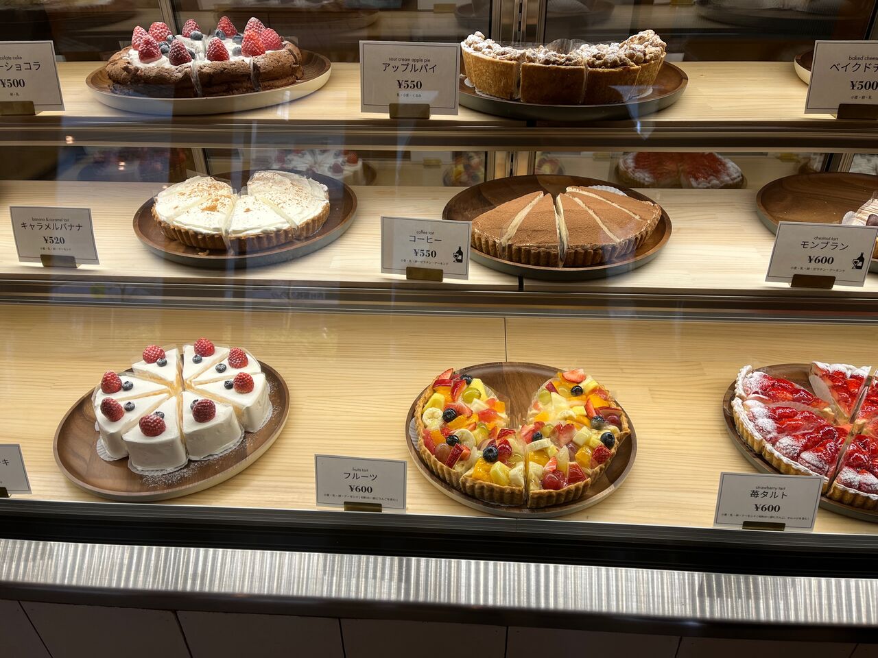 ショーケースにケーキがずらり。