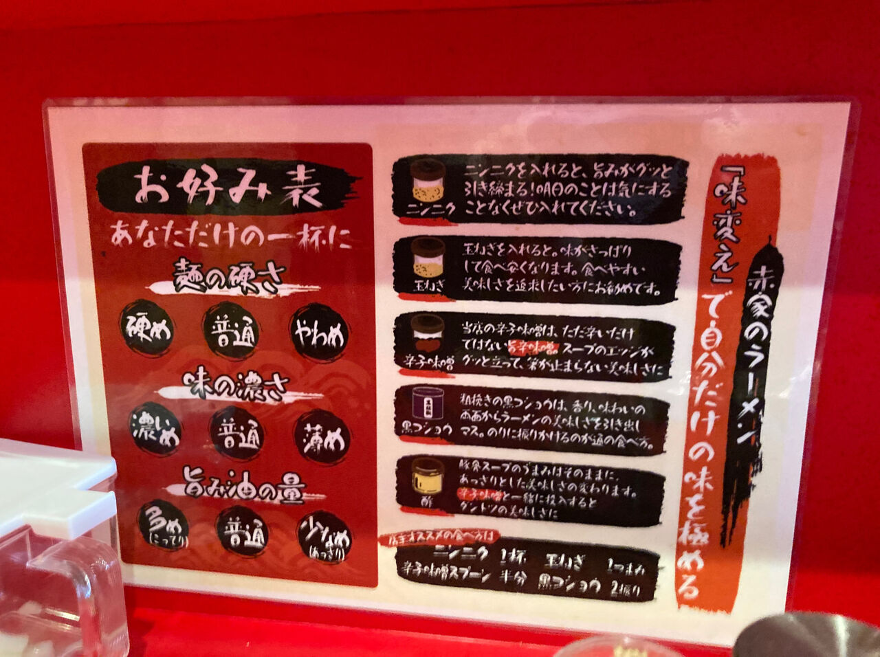 麺の硬さや味の濃さ、油の量が